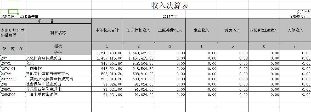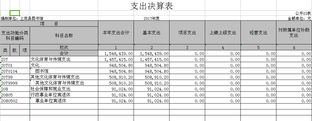 上犹县图书馆2017年度部门决算公开发表时间:2018-09-13 15:20 上犹县图书馆2017年度部门决算